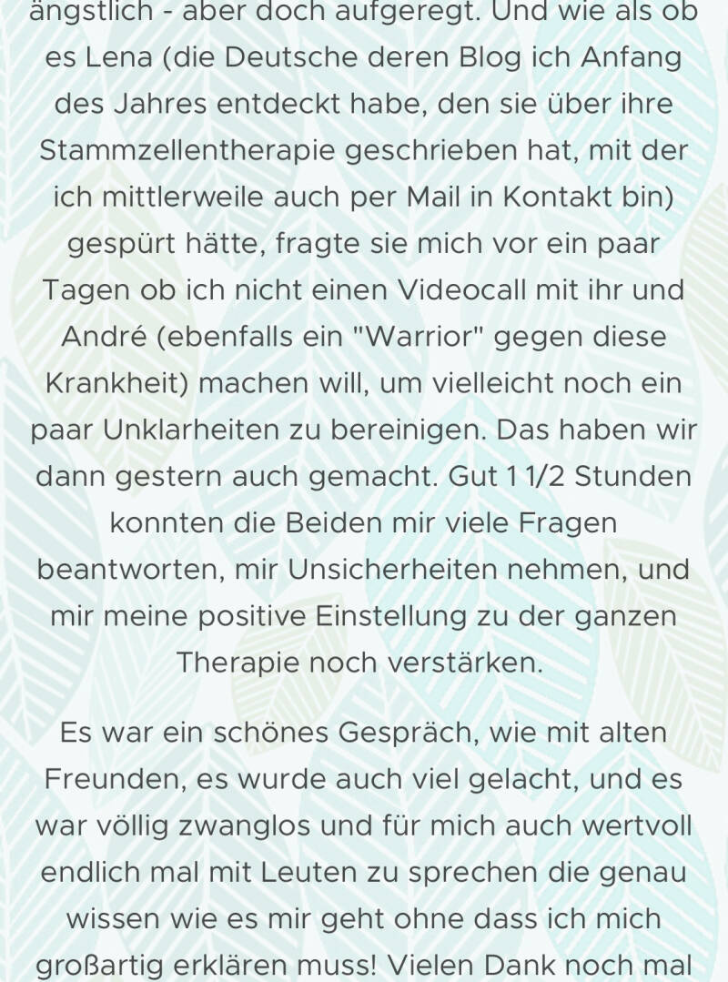 Ansonsten konnte ich weitere positive Nachrichten über die Sozo-Therapie in Erfahrung bringen! Ich freue mich da jetzt wirklich sehr drauf und bin ultra gespannt!!!!!! 🤩 Auf solche Neuigkeiten haben wir lange warten müssen...